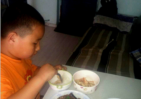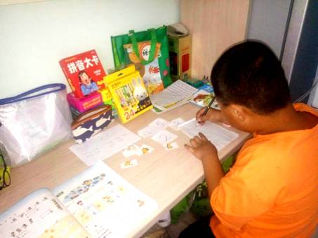 图为经过启智园老师训练后,孩子在家里能够安静的学习