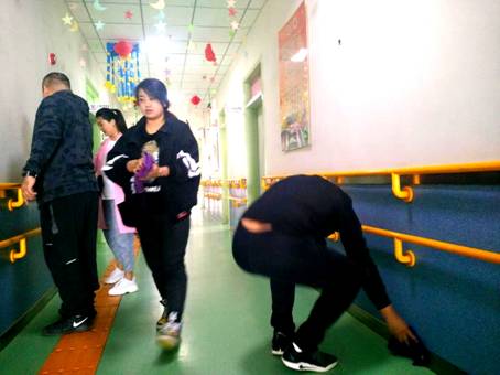 体彩中心的员工曾经到这里慰问为园里的孩子们奉献爱心礼物,今天再次来到这里,进一步体现了他们大爱的情怀和扶残助残的精神。适逢阜新市5月助残月即将来临,体彩中心员工更加惦记启智园的孩子们,总想为启智园做点有意义的事情,他们带着爱心来到园里,主动寻找该做的事。大家看到走廊的扶手是孩子们每天都触摸的地方,应该永远保持最大程度的清洁就找来抹布一起动手,精心地擦拭扶手。还有的员工,仔细端详通往大厅的四扇玻璃门,发现门的边角略有尘土,就一起上阵擦拭,擦亮了玻璃门。