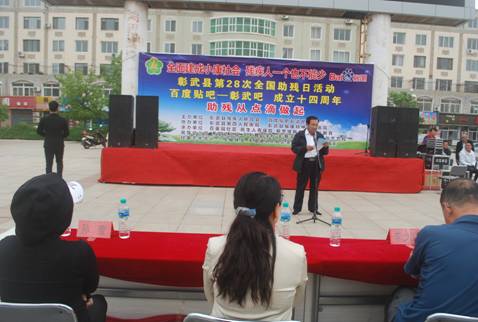 5月 23日上午,由彰武县残疾联、百度贴吧彰武吧主办,彰武县第四人民医院、彰武县福康精神卫生医院承办的以“全面建成小康社会,残疾人一个不能少”为主题的第二十八次全国助残日主题活动在彰武县天歌广场举行。彰武县残联全体工作人员参加,彰武县残联理事长出席活动并发表讲话。有关单位主要负责同志也参加了此次活动。