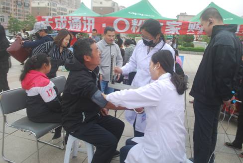 图为医务人员为现场观众免费义诊