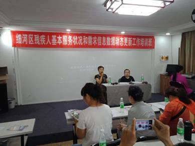 为确保今年细河区动态更新数据采集和录入的及时性和准确性,做好今年我区残疾人基本服务状况和需求信息数据动态更新工作。 6月14-15日,细河区残联举办了2018年细河区残疾人动态更新工作培训班。区残联理事长刘畅出席开班仪式并做动员讲话。来自镇、各街道负责人、残联理事长,村、社区残协专职委员,动态更新工作相关人员共120 余人参加了培训。