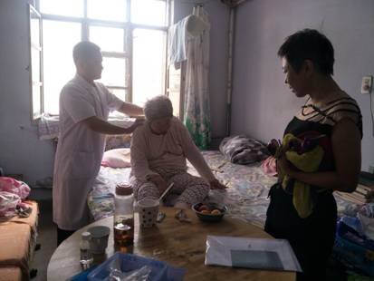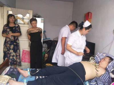 王翠华、李野母子患重症肌无力多年,生活完全不能自理,多年不能出屋,去医院检查身体更是不可能的,刘畅理事长在工作中了解到这一情况后,马上与阜新市花园医院院长刘福研协商,立即决定派几名医生、护士到李野家为其母子检查身体、做针灸、理疗按摩康复治疗;检查结果除母亲王翠华有些缺钙外其他各项指标均为正常。自从母子被确诊为重症肌无力后,从未做过康复治疗,病情发展迅速,母亲已经完全不能自理,只能平躺。儿子脊柱严重变型,坐着椅子移动。为了延缓病情,医生当即为其母子做了针灸及按摩。