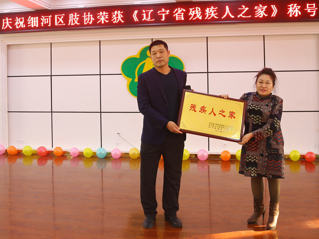 12月 25日上午,在市残联多功能大厅举办了“辽宁省残疾人之家”授匾仪式,市残联组联部主任沈淑敏向细河区残联肢残人协会主席陈海森颁发了“辽宁省残疾人之家”牌匾。市残联副理事长、残疾人协会党支部书记、市肢残人协会主席杨青参加仪式并对细河区肢残协会获得此项荣誉表示祝贺,向细河区肢残人致以新年祝贺。