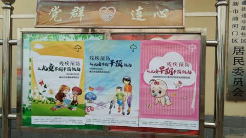 8月25日,清河门区残联主办了主题为“残疾预防,从儿童早期干预做起”的宣传活动。根据活动主题,区残联在各个社区张贴宣传海报,利用社区的滚动屏循环播放活动主题,同时通过媒体和微信朋友圈播放宣传片,提高广大群众对于残疾预防的认识。