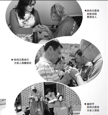 其中,2016年初举办的“积善助残·暖风行动”淄博—阜新名家书画义拍笔会共有40余幅书画作品参加展拍,共筹得善款3.2万元; 同年举行的“关爱孤残儿童,让爱洒满人间”大型义演义捐助残公益活动引得82支助残志愿者团队参与,8.4 万元善款送到了孩子们手中;同年“盲人节”期间,以“暖风行动为盲人捐赠盲杖”为主题的活动广泛开展,共有300多名助残志愿者为盲人捐赠了盲杖。