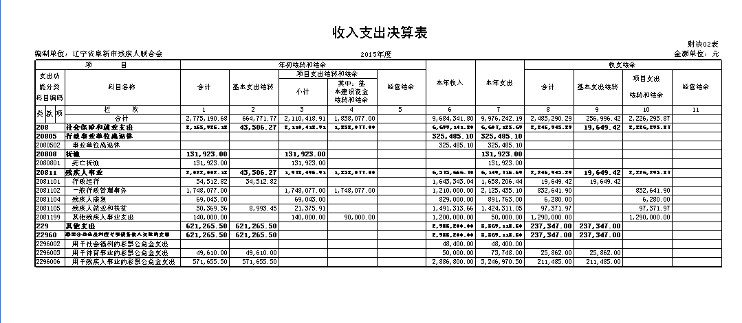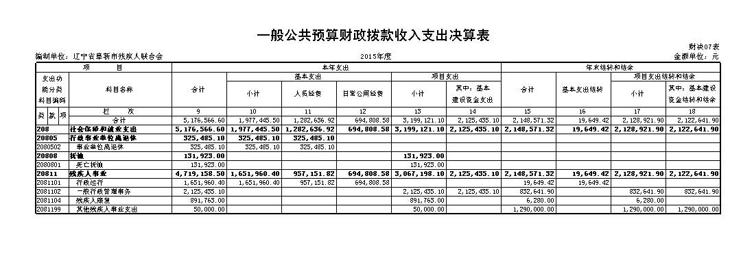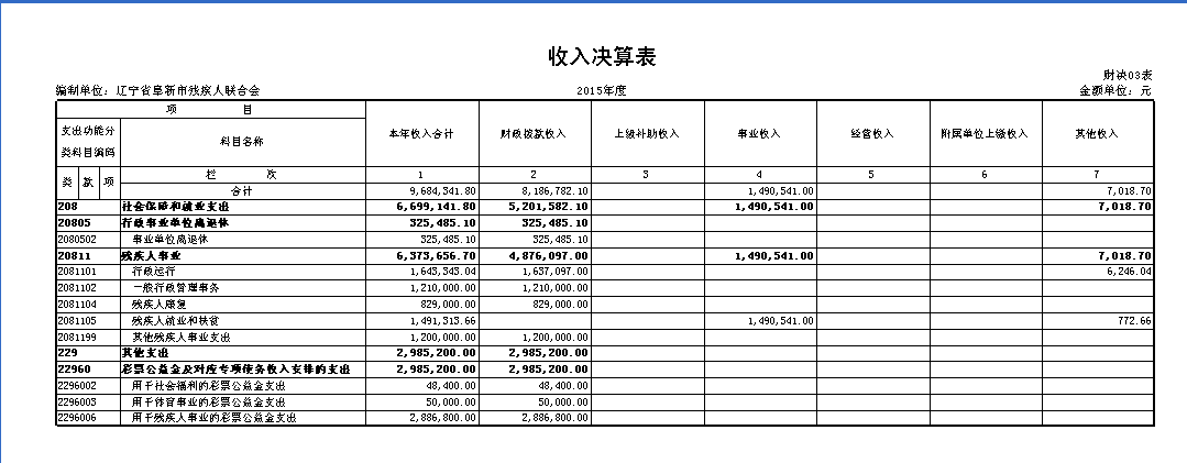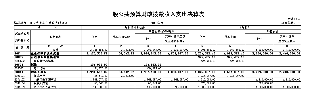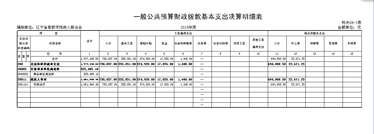(附表)第二部分阜新市残联2015年度部门决算公开报表