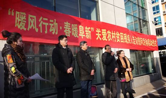 2月 1日,沐浴着冬日阳光,“暖风行动•春暖阜新”关爱农村贫困残疾人走访慰问活动启动仪式在市残联院内召开。简单的仪式后,助残志愿者们奔往各个乡镇,为贫困残疾人送去爱心和温暖。市残联副理事长张兴洲、范志伟,市精神文明办志愿者科科长庞显明、市助残志愿者协会会长赵文楷参加了启动仪式。