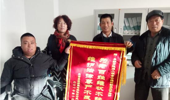 12月 12日,重度残疾人杨野坐着轮椅,在家人的陪同下来到市残联,将一面锦旗赠给市残联残疾人法律援助中心。