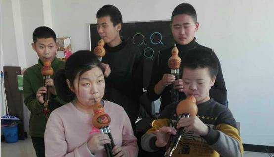 在个训课中,有 10 名学生从不会说话到正确发音,能够开口说话并与人交流;有15 名学生提高了认知能力,能够指认并说出7—9 种日常用品。我们的群体课,成效显著,大部分学生都能够情绪稳定地跟着老师上课,并完成全部课堂内容。有5 名学生完成了生活自理能力的培训,可以独立生活。全园大多数学生学会了唱歌、跳舞,有一半以上的学生能够登台表演节目。
