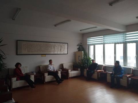 图为七家子镇党委书记孟宪刚(左二)与市残联副理事长张兴洲(右二)沟通相关工作情况
