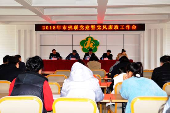 3月15日上午,市残联召开2018年党建暨党风廉政建设工作会议,市纪委驻市委办纪检组成员关敬新同志、市残联党总支全体党员、中层以上干部、工青妇等组织负责人、群众评议监督团成员及广大残疾人工作者参加了会议。会议由市残联党组成员、副理事长张兴洲同志主持。