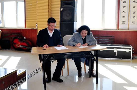 图为市残联党组书记赵作奎同志(左一)与残协党支部书记李丽娟(右一)签署党风廉政建设责任状