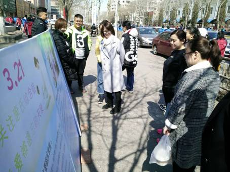 3月 21日中午,市残联康复中心与爱心启智园在市残联门前临街处,共同举行“国际唐氏综合症日”宣传活动,向市民宣传如何预防唐氏综合症知识。